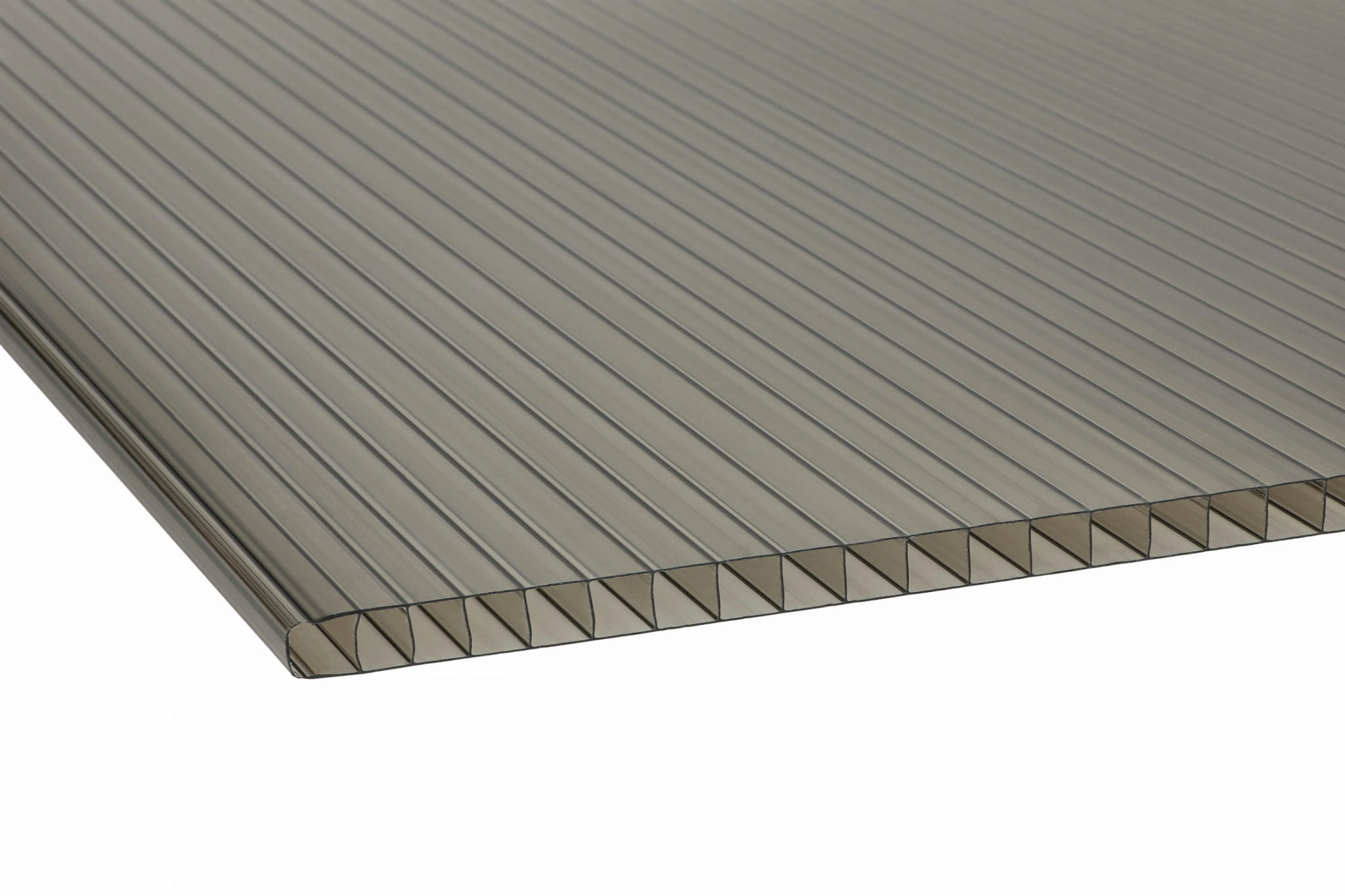 Oferujemy poliwęglan komorowy dymiony brąz o grubości 10mm znakomicie nadający się na różnego rodzaju zadaszenia takich jak tarasy, altanki, wiaty lub szklarnie.