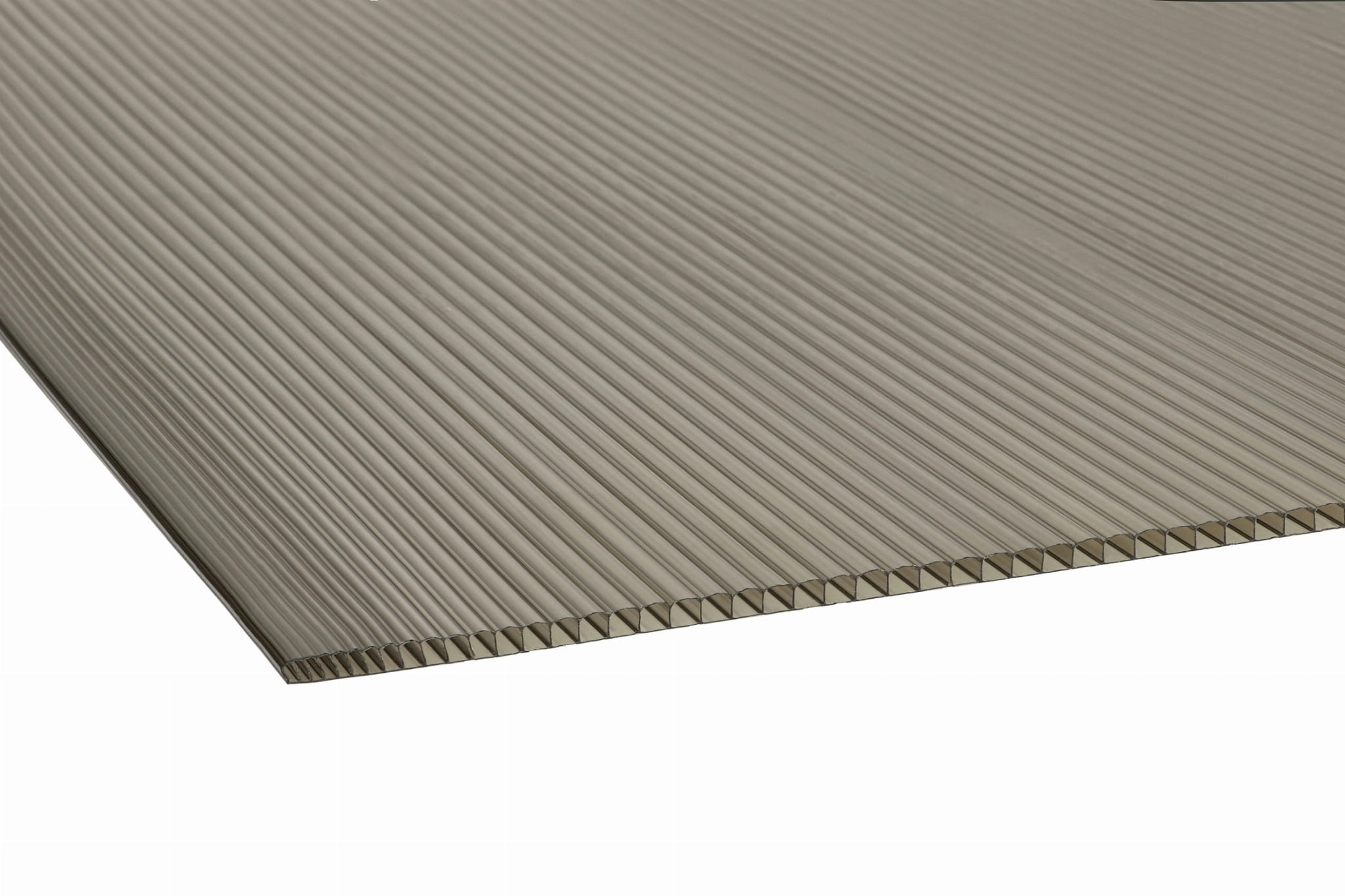 Oferujemy poliwęglan komorowy dymiony brąz o grubości 4mm znakomicie nadający się na różnego rodzaju zadaszenia takich jak tarasy, altanki, wiaty lub szklarnie.