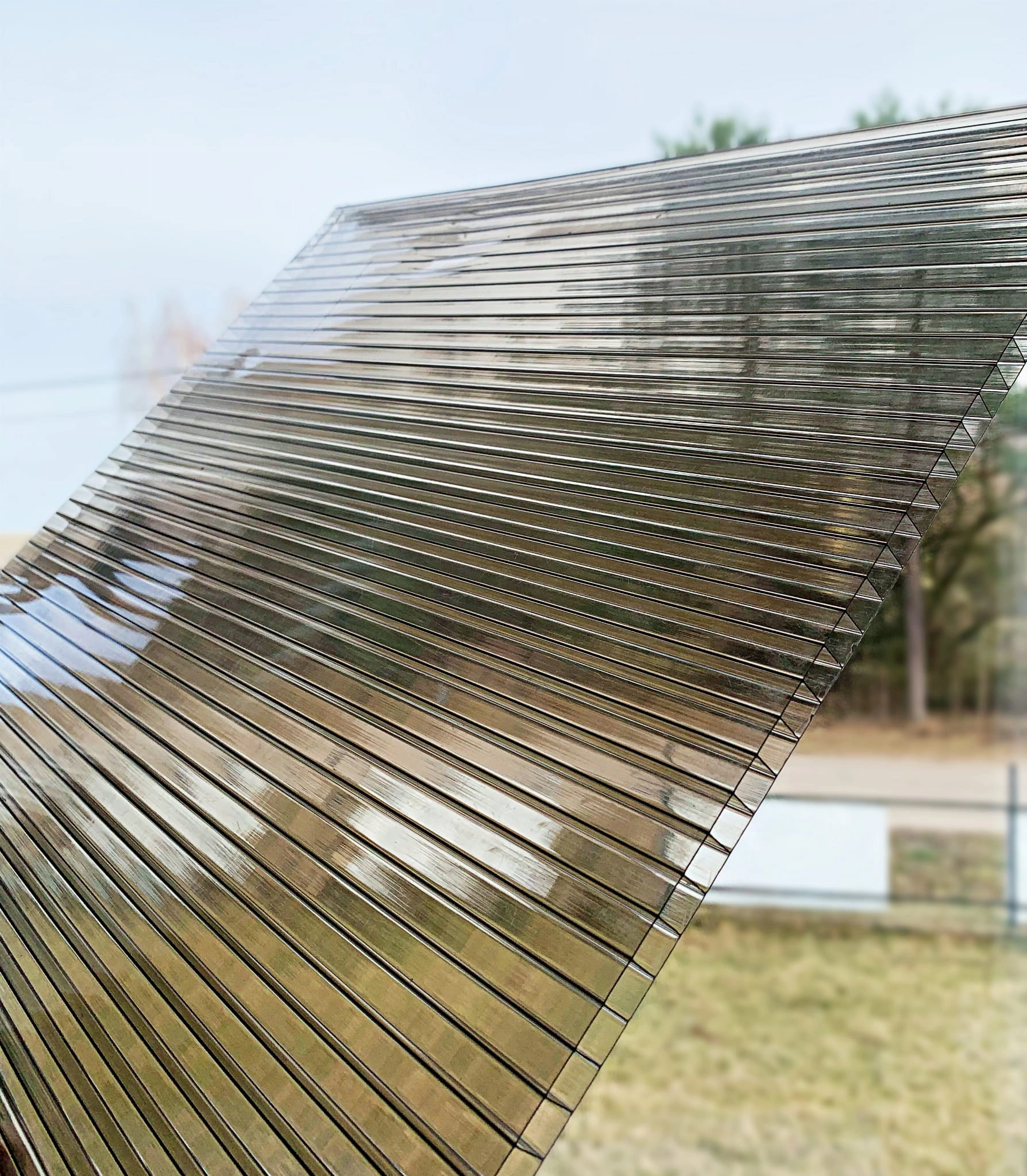 Oferujemy poliwęglan komorowy dymiony brąz o grubości 4mm znakomicie nadający się na różnego rodzaju zadaszenia takich jak tarasy, altanki, wiaty lub szklarnie.