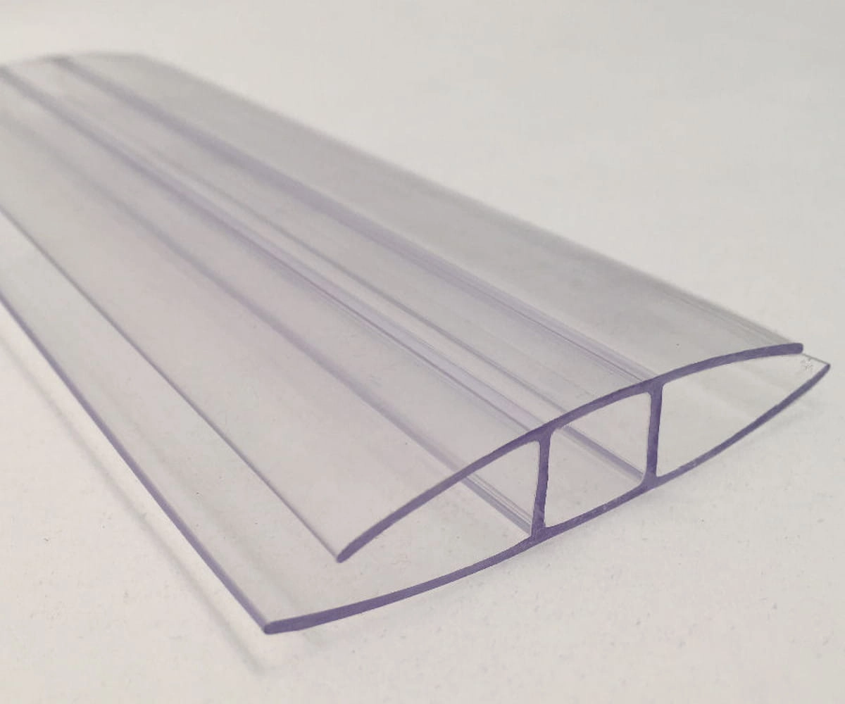Profil poliwęglanowy H04 to praktyczny i prosty sposób łączenia płyt poliwęglanowych o grubości 4 mm. W warunkach zewnętrznych wymagane jest zastosowanie silikonu w celu spojenia i uszczelnienia płyt z profilem.